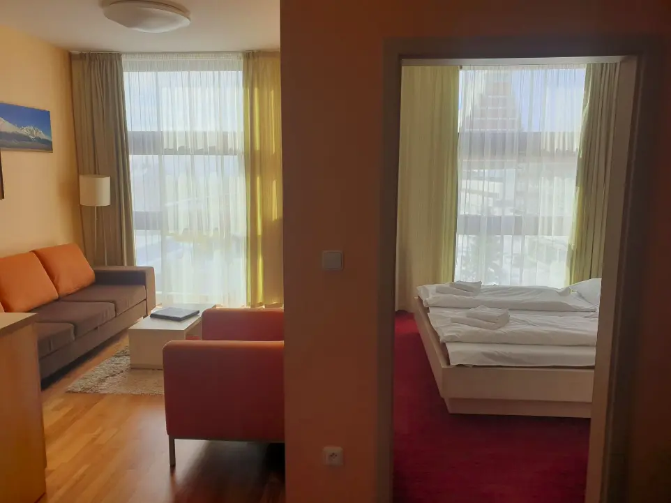 Užite si dovolenku plnú oddychu v Bešeňovej. Prenajmite si náš útulný apartmán s výhľadom na hory a zažite nezabudnuteľné zážitky v krásnej prírode s možnosťou relaxácie v termálnych kúpeľoch. Pre aktívny oddych môžete využiť zjazdovky v Jasnej alebo v okolí Ružomberka. Apartmán je vhodný pre páry aj rodiny s deťmi. Apartmán 131 sa nachádza PRIAMO v areáli termálneho aquaparku. Do bazénov sa dostanete priamo z apartmánu. Navyše máte automaticky 20 % zľavu na všetky vstupy do Aquaparku.